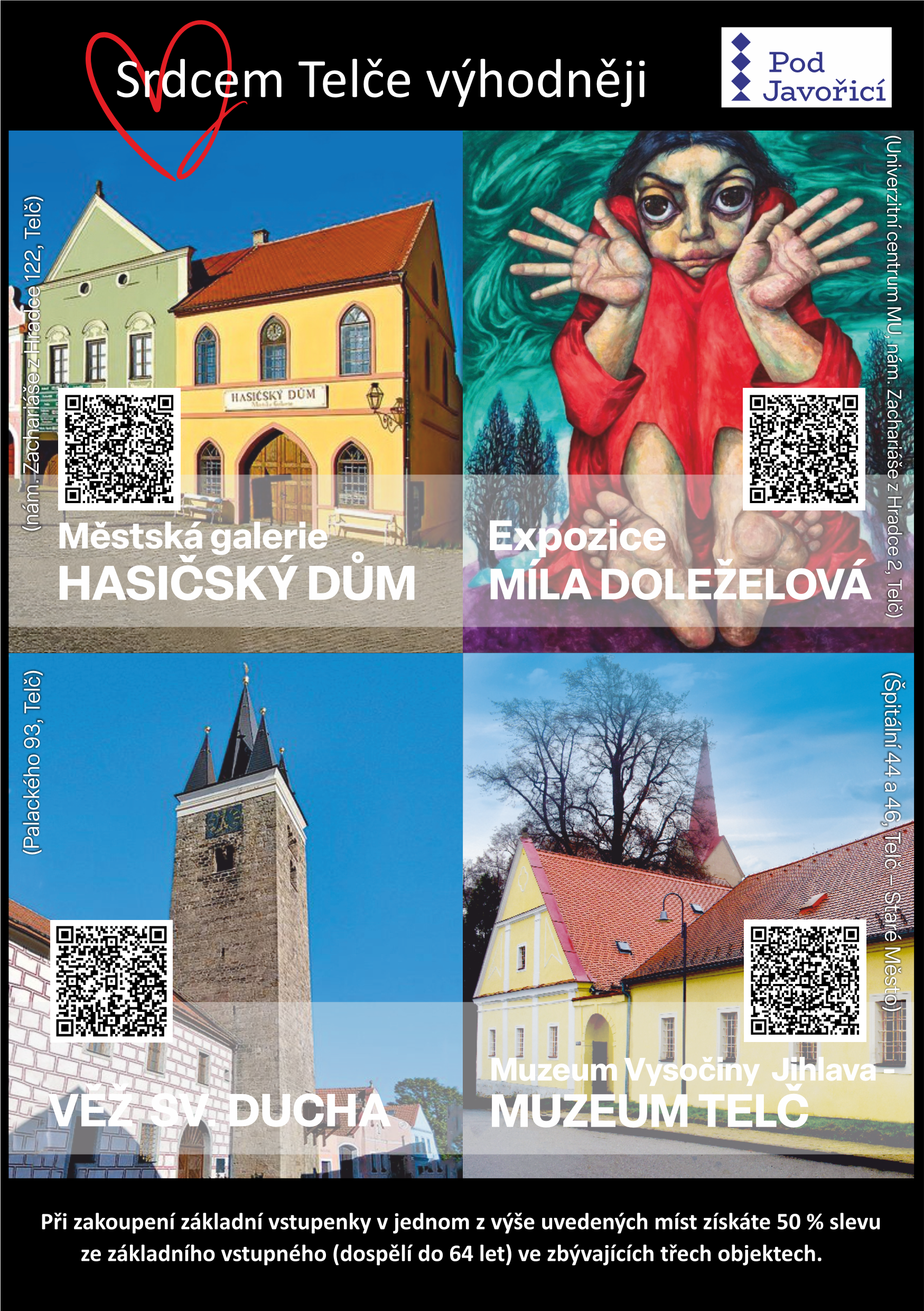 - Expozice Míla Doleželová (Univerzitní centrum MU v Telči, nám. Zachariáše z Hradce 2, Telč)Neváhejte a využijte příležitosti poznat krásy Telče za výhodnější cenu.