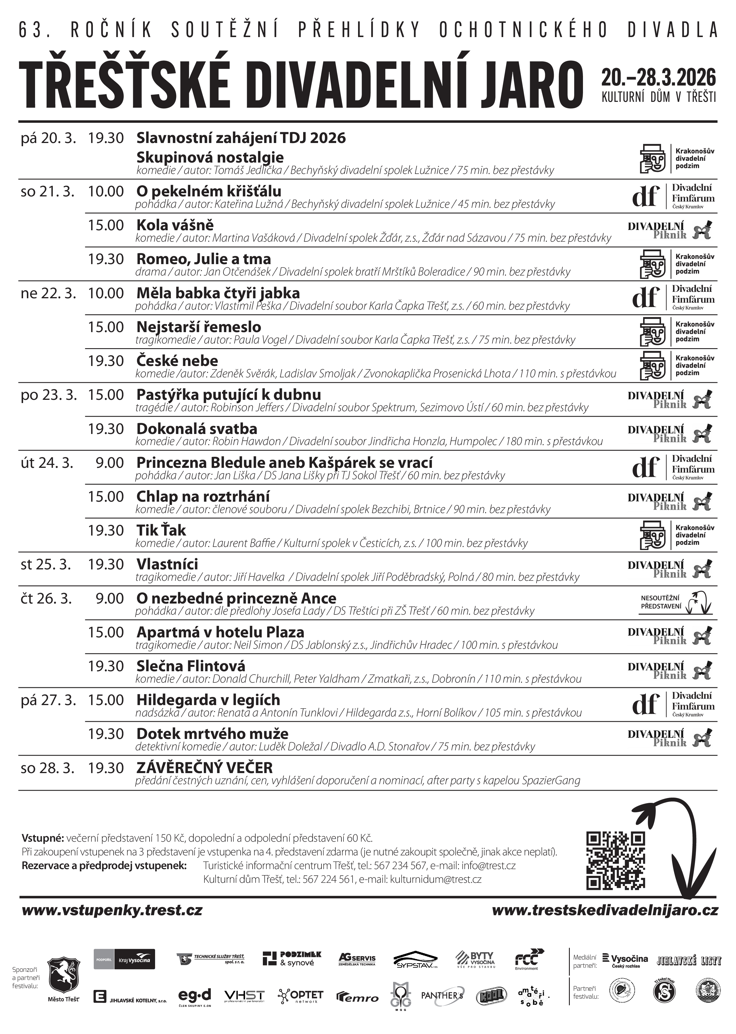 63. ročník třešťského divadelního jara. Bližší informace na plakátech.