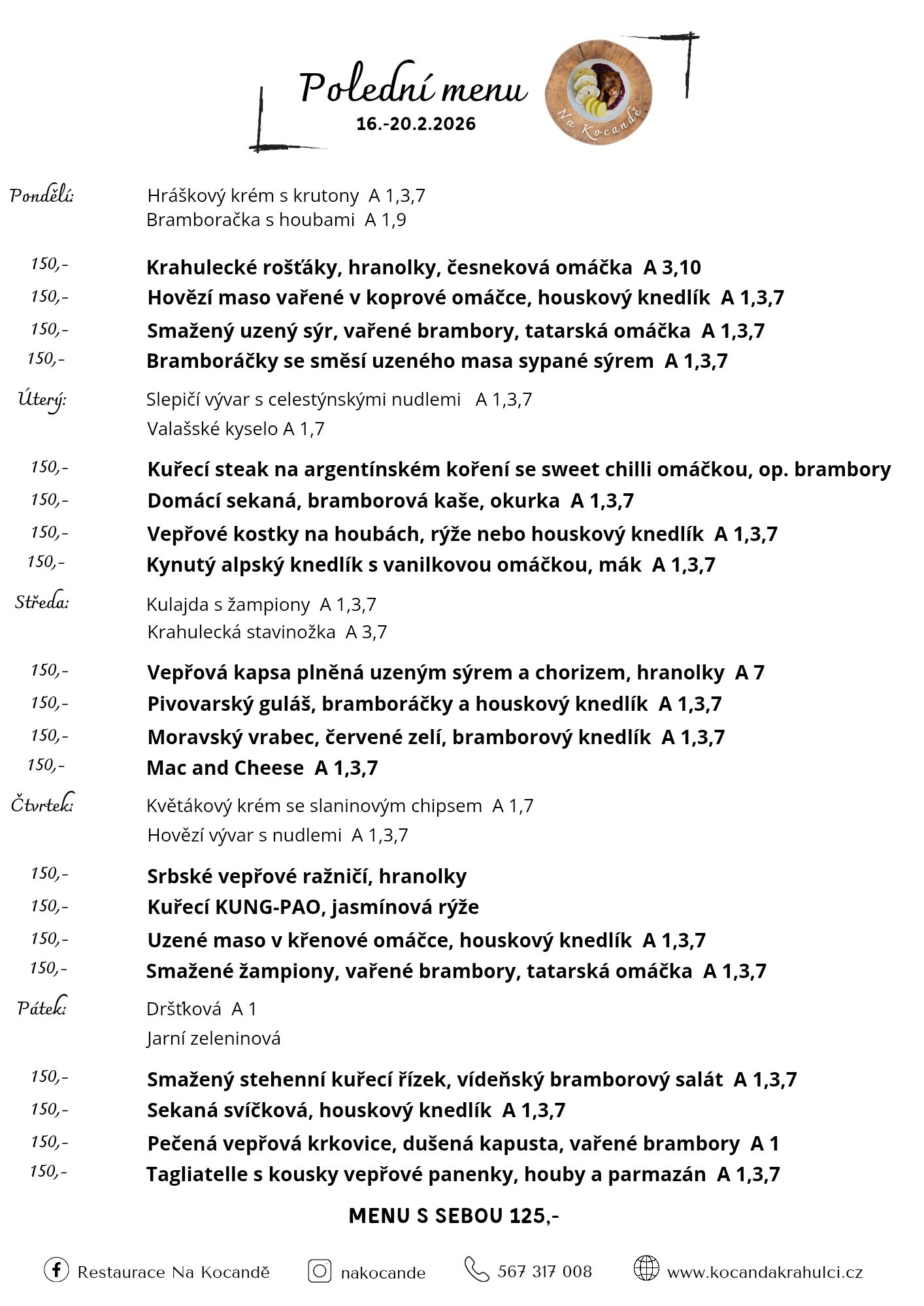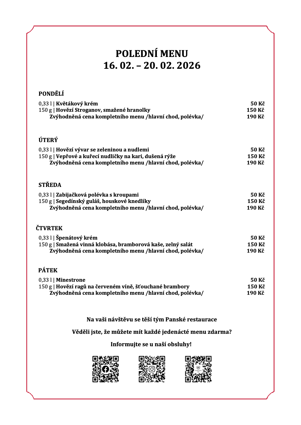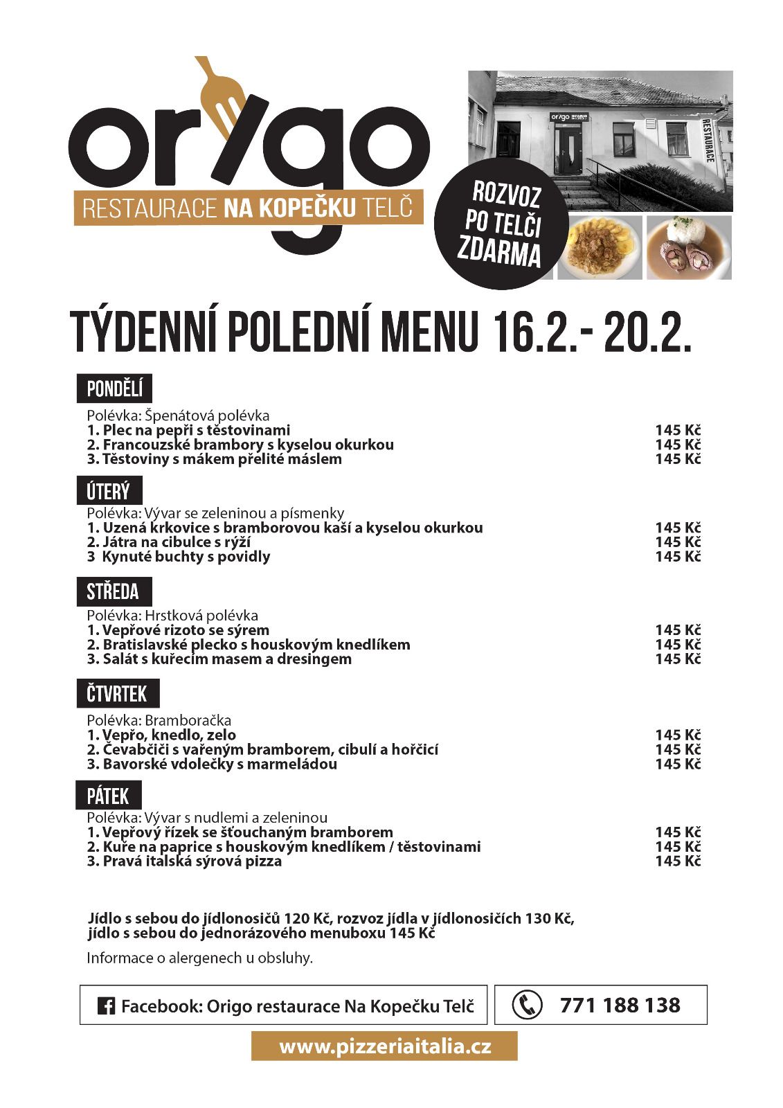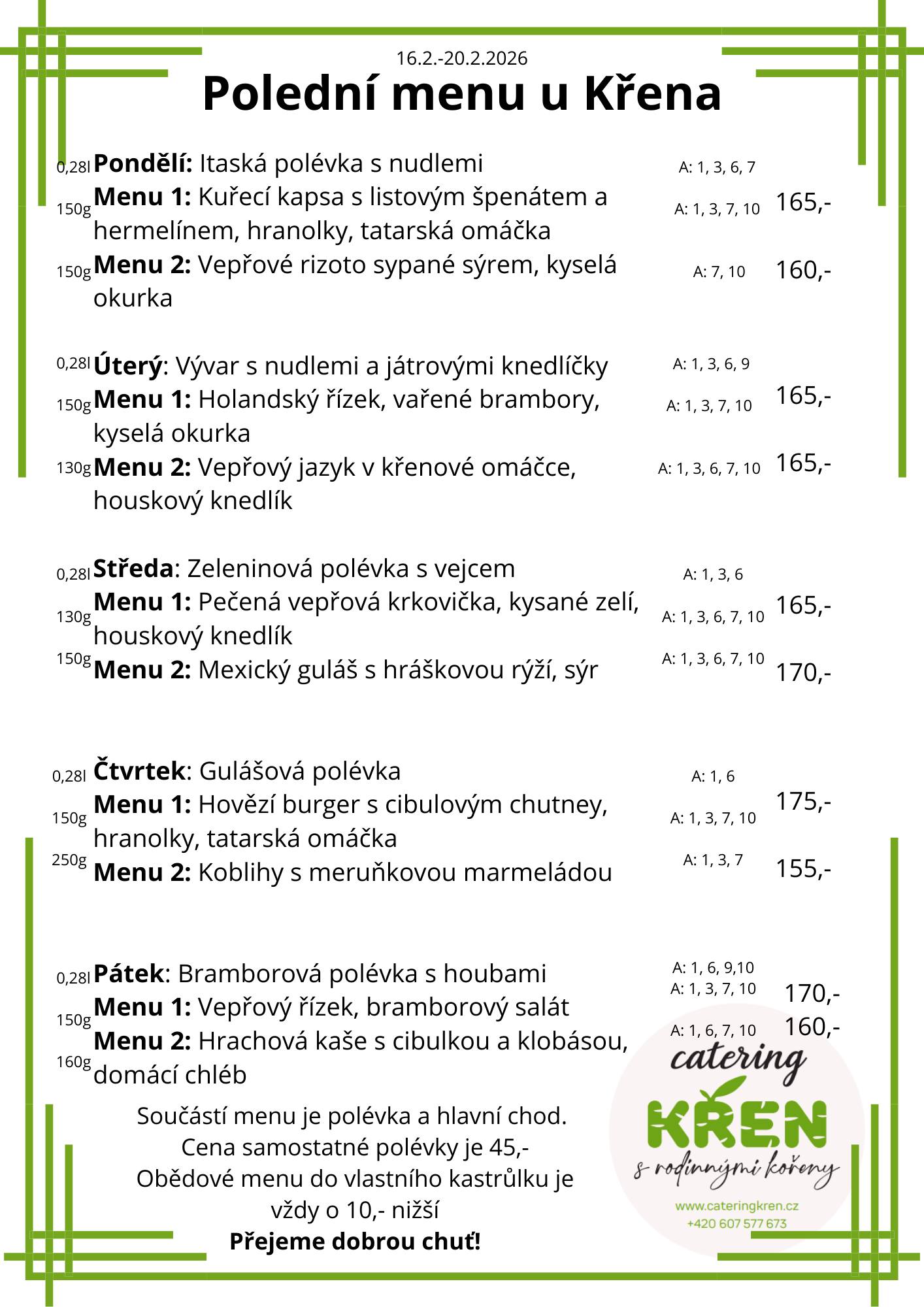 Týdenní polední menu nabízí třeba Panská restaurace v Telči, Wellness penzion Medličky nebo Na Kocandě v Krahulčí, nově i Catering Křen v Třešti a mnoho dalších!