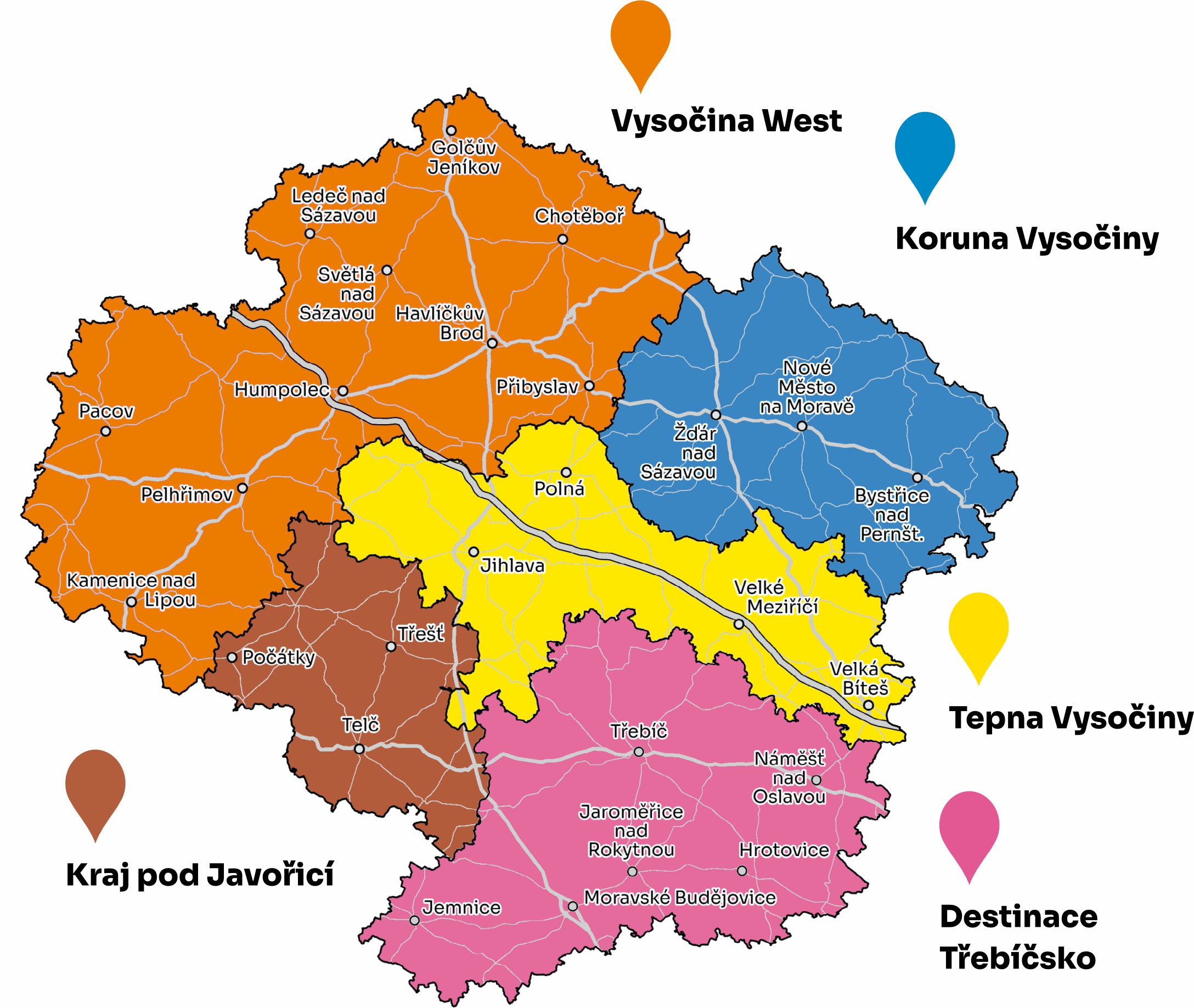 Turistická destinace Kraj pod Javořicí je aktuálně vymezena jako území přináležející pod správu obcí s rozšířenou působností a Mikroregionu, které se rovněž staly zakladateli – Telč, Třešť, Počátky. Území na Jih od krajského města jehož součástí je nejvyšší vrchol Vysočiny, Javořice o rozloze cca 592 km2 se společnými geografickými, historickými rysy a kulturními tradicemi.